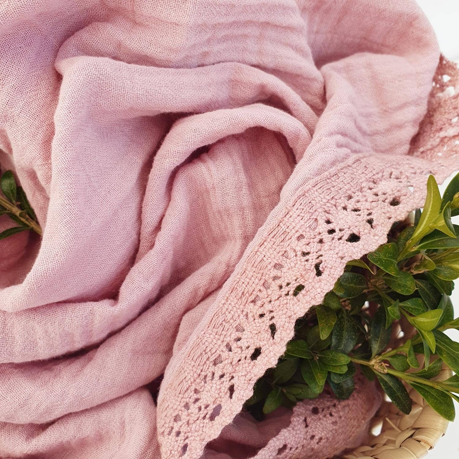 Hoppediz Premium skötfilt av ekologisk bomull – mångsidig gosig filt & babyfilt, perfekt som gosefilt, första filt och snuffelduk, rosa smarin vit
