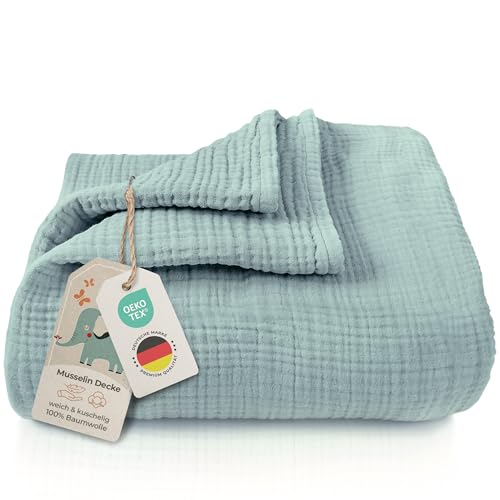 LAYNENBURG Premium muslin-babyfilt 120 x 120 cm – 4-lagers filt av 100 % bomull – Oeko-TEX 100 – gosig filt eller sovfilt, skötfilt för spädbarn, nyfödda och barn (mintgrön)