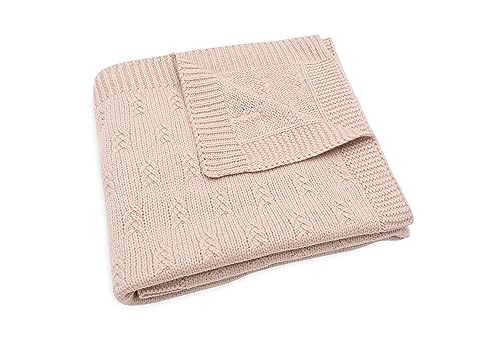 Meyco Baby Knots babyfilt, stickad vaggan filt (tillverkad av 100% mjuk bomull, mångsidig, lättskött, andas, storlek: 75 x 100 cm), rosa