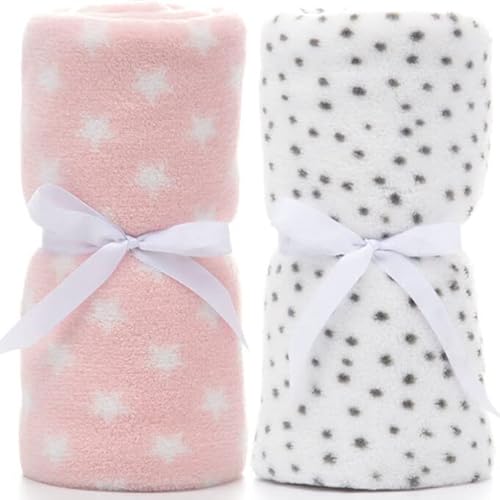 LeerKing Unisex Babyfilt 2-pack Pojkar Flickor Mysig Filt Baby Sängkläder Barnvagn för Nyfödda Mjuk Filt 75cmx100cm Rosa+Vit