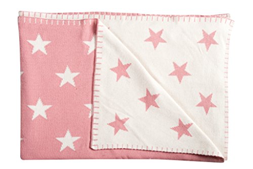 Ti TIN | Babyfilt, 80 x 110 cm | gosig filt av fleece-tyg, varm och mjuk, för bil, vagga, barnvagn, babystol, etc, stjärnmönster – färg: rosa/rosa