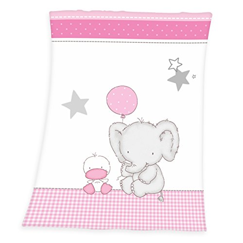 Bieco Babyfilt Flicka Rosa Elefanter | Baby Filt | Snuttefilt Baby | Blanket | Överkast Barn Pojkar | Sittvagnsfilt | Snuttefilt | Kudde | Filt | Mjuk Fleecefilt