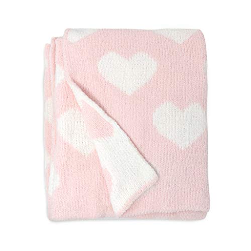 Levande textilier rosa hjärtan chenille mjuk babyfilt vändbar premium mysigt tyg för bästa komfort – för spädbarn, småbarn, nyfödd, barnkammare, flicka, överkast, spjälsäng, barnvagn, gåva, rosa