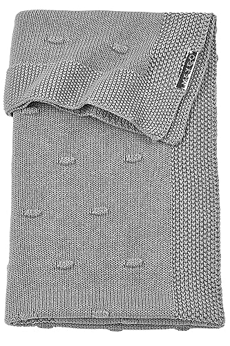Meyco Baby Knots babyfilt, stickad vaggan filt (tillverkad av 100% mjuk bomull, mångsidig, lättskött, andas, storlek: 75 x 100 cm), grå