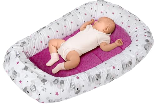Medi Partners Babynest, gosig nest, babynest, 100% bomull, resesäng för spädbarn, 100 x 60 x 15 cm, avtagbar (Stjärnor rosa Minky