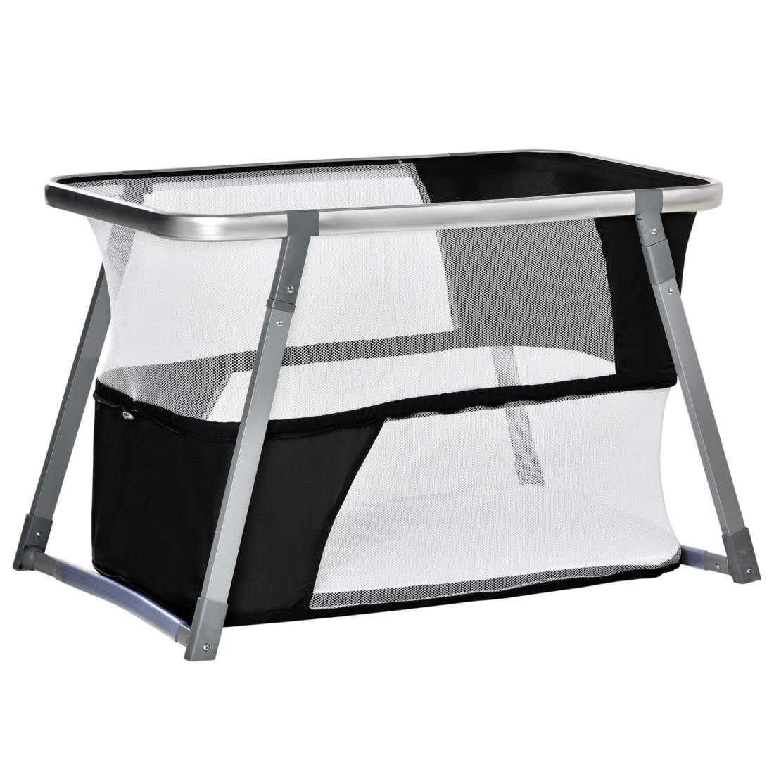 Willonin Babysäng, babysäng, babykododosäng, vikbar babyvagga, justerbar höjd och justerbar, madrass, 4 svängbara hjul, myggnät, lutande vaggor (93 x 57 x 71–88 cm, svart)