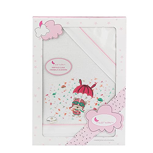 Flanellsängklädesset för babyvagga – modell "Paracaidista" i vitt och rosa