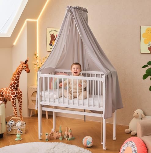 Supfine Cododo 3-i-1-barnsäng med madrass och myggnät, höjdjustering, mobil babyvagga för nyfödda/spädbarn, Codododo-säng med förvaringskorg (grå, 80 x 40 x 100–116 cm)