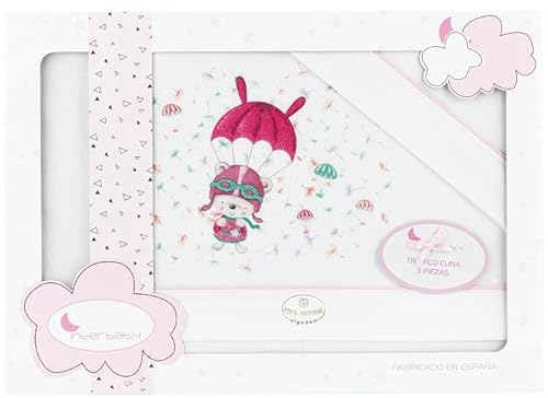 Set med sängkläder för babysäng Paracadient, i vitt rosa – 100% bomull – 3 delar sängkläder för babyvagga