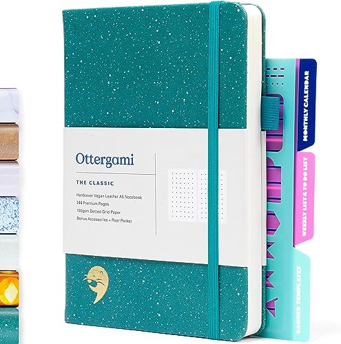 Ottergami Bullet Dotted Notebook | Hardcover 150g/m² A5 Grid Dot Notebook Journaling Kit Incl: Stencils, Back Pocket and Pen Holder | The Classic
