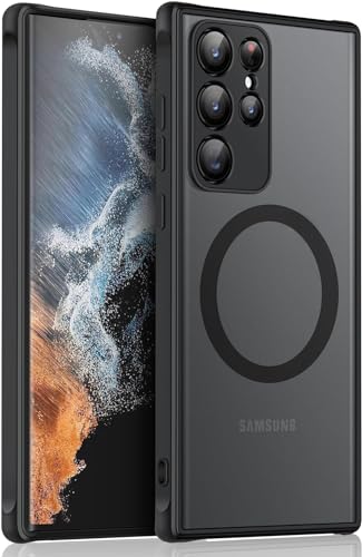 HikerClub for Galaxy S22 Ultra (2022) Magnetic Case Translucent Matte Shockproof Protection Cover Soft Slim Thin TPU Silicone Resistant Bumper Lens Protector Back Cases, Black