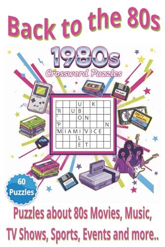 Back 2 the 80’s Crossword Puzzles: 1980s themed crossword book. Easy to read print. 50+ puzzles about movies, music and more! Great gift for any occasion!