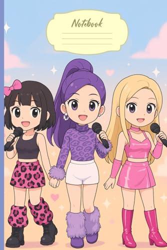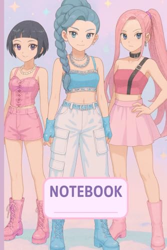 Composition Notebook: 6x9in | 3 Cute Pastel Anime Girl in K-Pop Style Idol Outfit and Inspired Music Lover Journal for kids, Teens, Back to School