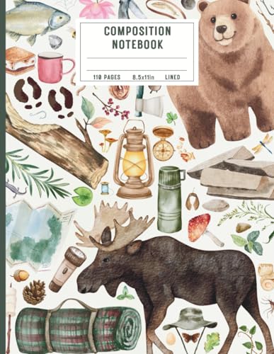 Composition Notebook College Lined: Cozy Wilderness & Camping Journal | Forest Creatures & Wilderness Adventure Stationery for Back to School, Home, Office & College | Outdoor Nature Lover Gift 8.5x11