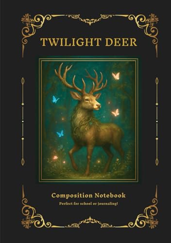 Composition Notebook College Ruled: Vintage Deer and Butterfly's around Green Forest Fantasy style Journal for Nature lover, Back to school Gift For Student, College, Wide Lined 7x10, 111 Pages