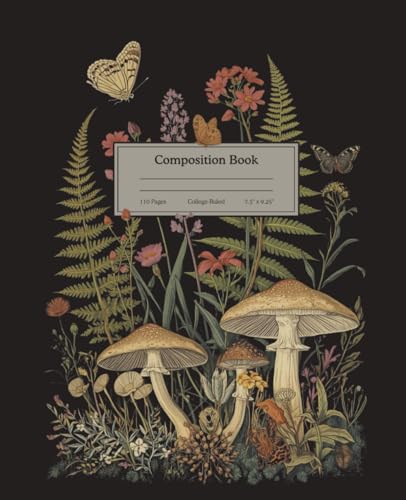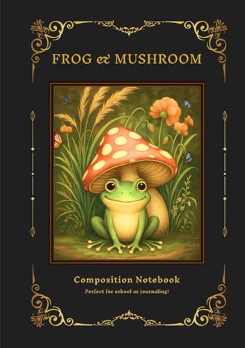 Composition Notebook College Ruled: Frog & Mushroom Classic 'vintage Style Nature lover, Back to school Gift for Student or Journaling, Wide Lined, 7x10, 111 Pages