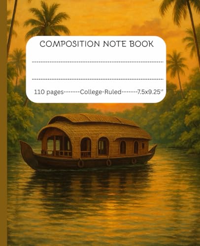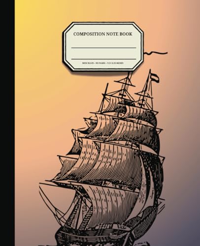 Composition Note Book: Cute Nature Themed Line Art Boat Wide Ruled - 110 Pages - 7.5 x 9.25 Inches | Perfect for Back to School, School Kids, Teens Boys and Girls