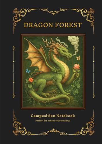 Composition Notebook College Ruled: Vintage Dragon Forest Fairytale, office work, Nature lovers Journal For Back To School, Gift for students, Hard cover 7x10, 111 pages, Wide Lined