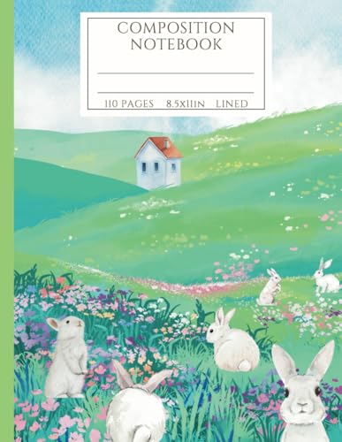 Composition Notebook College Lined: Bunny Hilltop Meadow Journal Diary | Cozy Countryside Flower Field Theme Stationery for Back to School, Home, ... | Cute Gift for Nature & Animal Lovers 8.5x11