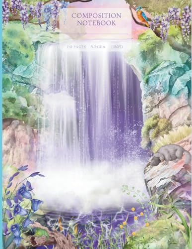 Composition Notebook College Lined: Kingfisher & The Cascades Journal | Dreamy Wisteria Waterfall Stationery for Back to School, Home, Office & College | Peaceful Nature Theme 8.5x11