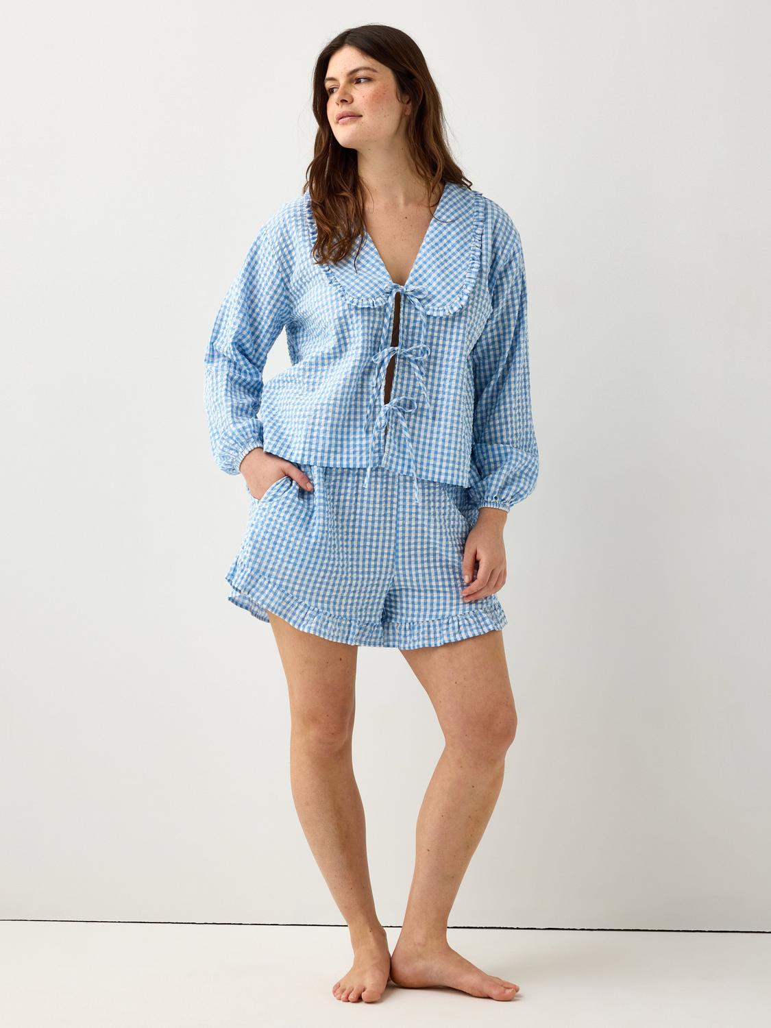 Kosta Linnewäfveri Backa Seersucker Blå Blommor Bäckebölja Bäddset Enkeltäcke 150x210