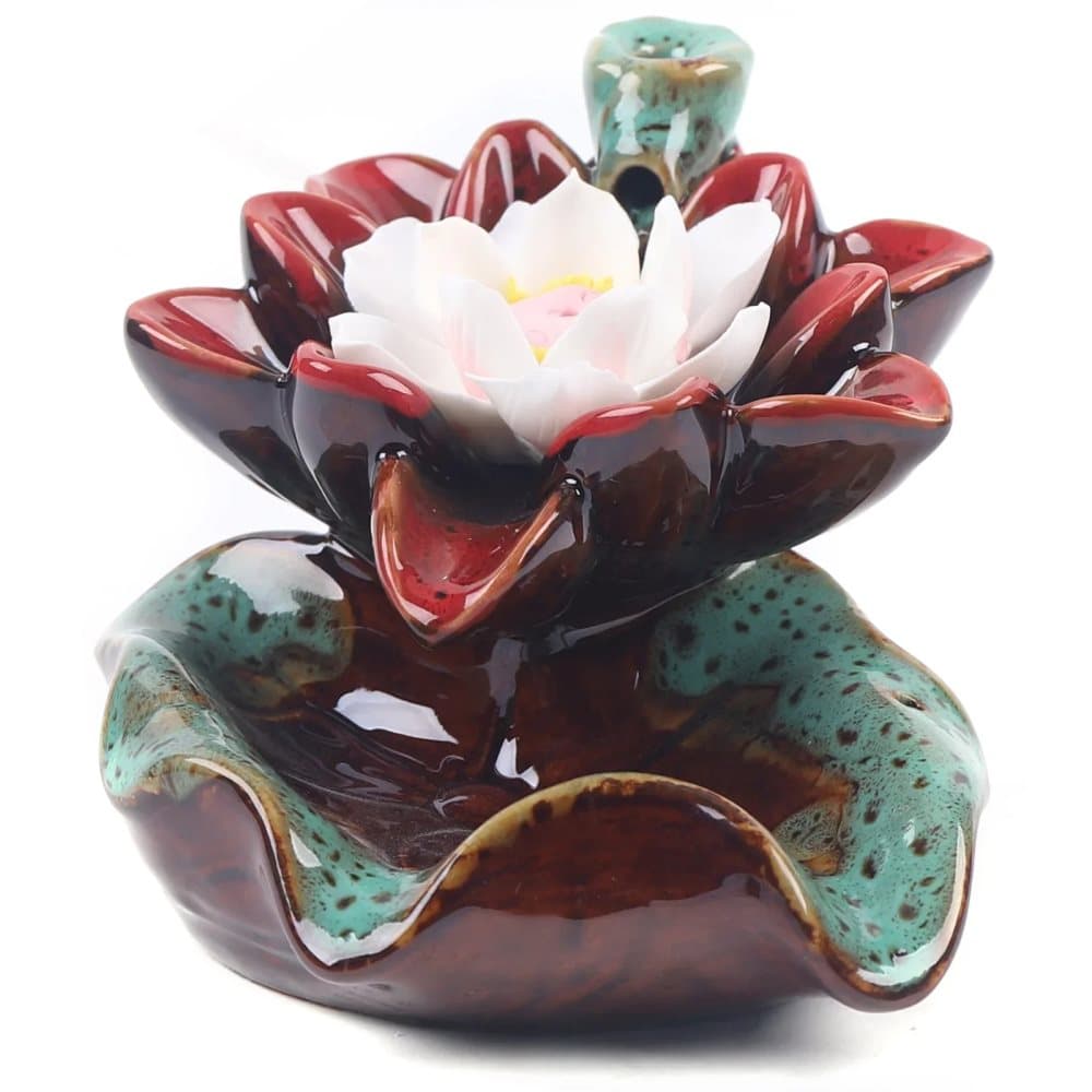 Lotus - Rökelsebrännare/Rökelsehållare - Backflow Vattenfall - Keramik - Utan Rökelsekoner - Brun