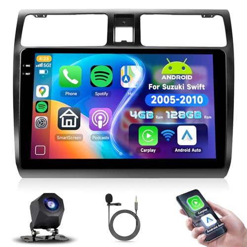 2+64G: podofo 10-tums bilradio för Suzuki Swift 2005–2010, Android 13, trådlös carplay Android Auto, 2 dinradio Bluetooth med pekskärm WiFi/Navi+ AHD backkamera HiFi/RDS/FM DAB+