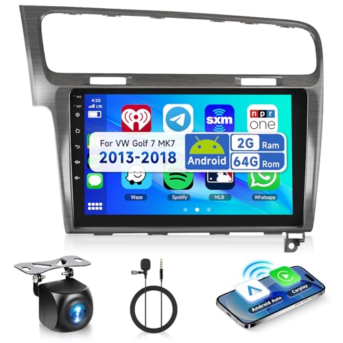 Podofo 10,1 tum bilradio för VW Golf 7 MK7 2013–2018 trådlös Carplay Android bil med WiFi/Navi skärm HiFi FM/RDS, Bluetooth, Airplay,SWC, Andriod 13 bilradio 2 din med AHD backkamera, Canbus