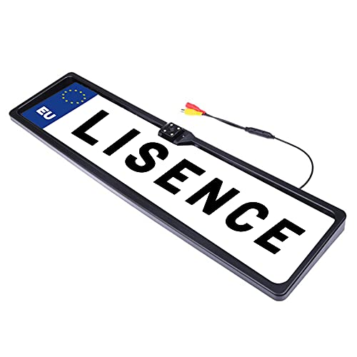 CUQI backkamera med nummerplattshållare, HD nattversion, universell ram, 12,0 V, vidvinkel, 170,0 grader, LED, ytmontering, skärm