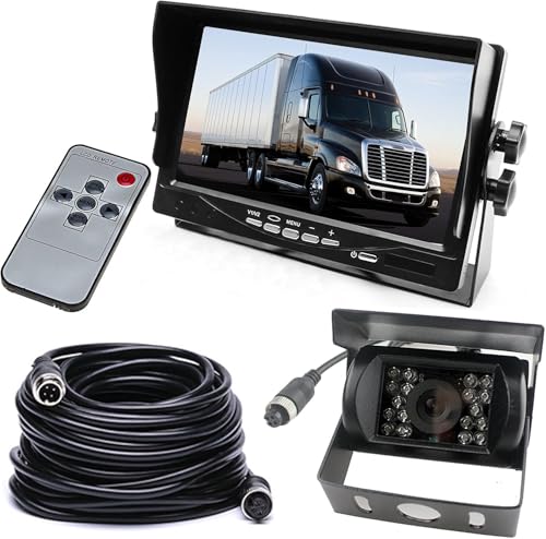 HUACANG DC 12-24 V backup-kameramonitorsystem, vattentät 18 LED mörkerseende omvänd backkamera med 15 m 4-stifts luftfartskabel + 7 tum TFT LCD-skärm för stor lastbilsbuss husbilsläp