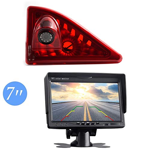 Bil tredje takmonterad brom backup-kamera kompatibel med Peugeot Expert 2007–2016/Fiat Scudo 2007–2016/Citroen Jumpy 2007–2016 (backkamera + 7 tums skärm)