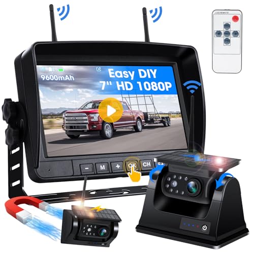 Magnetisk backkamera trådlös solcell 9 600 mAh backkamera trådlöst batteri med 1080P mörkerseende 7 tums skärm backkamera husbil för bil, husvagn, lastbil, enkel installation, loopinspelning