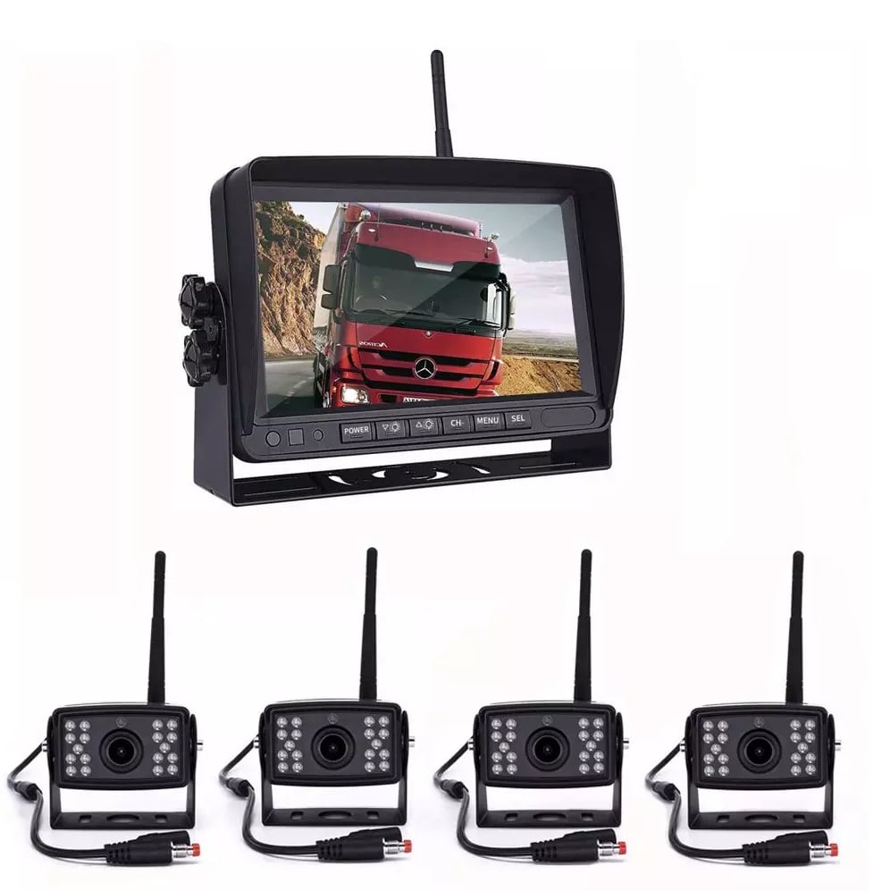 Digitalt backkamerasystem med 4st trådlösa backkameror, 7" skärm, IR Mörkersyn, 100m digital signal