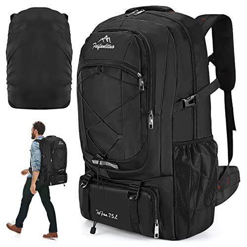 Auniq 75 liter vandringsryggsäck, vattentät och lätt vandringsryggsäck sport ryggsäck vandring ryggsäck utomhus camping ryggsäck med regnskydd för klättring resor camping, Svart, 75L