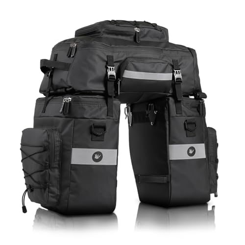 UBORSE Cykelväska 3-i-1 75 l vattentäta cykelväskor för bagagehållare multifunktionell bagagehållarväska cykelväskor bak bagagehållare, ryggsäck och axelväska med regnskydd (svart)
