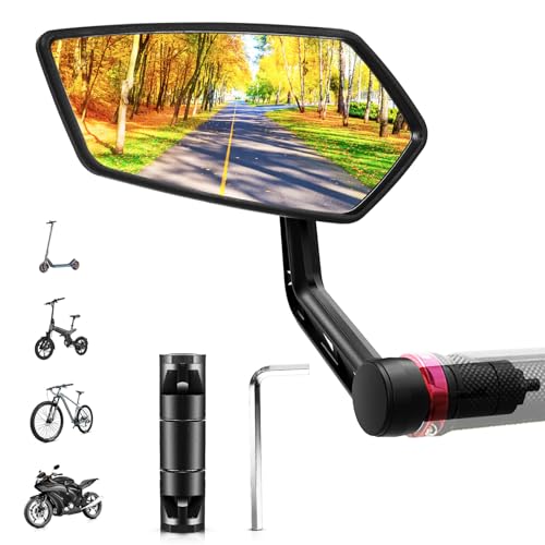 RBRL Cykelspegel, extra stor spegelyta, 360° justerbar backspegel, slagtålig äkta glas, cykel, backspegel, universell cykelspegel för e-cykel, vänster cykelspegel (vänster)