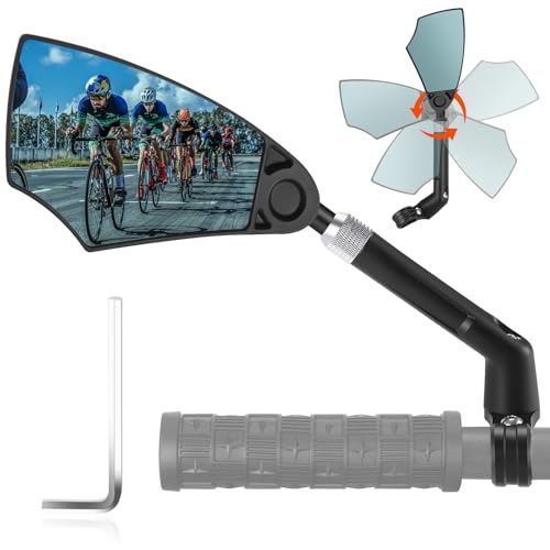 WITTKOP Cykelspegel | Stort HD-synfält | 360° vridbar och vikbar | Montering övre och nedre | okrossbar och hållbar | konvex backspegel för cykel, e-cykel | Vänster, styre, ebike