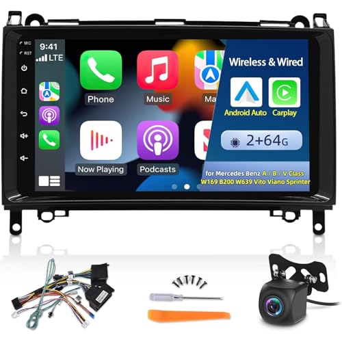 NHOPEEW Android bilradio för Mercedes Benz A/B/V Class W169 B200 W639 Vito Viano Sprinter, pekskärm Apple Carplay & Android Auto/Wi-Fi + AHD Backup Camera 2+32G