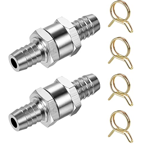 YEAPEAK 2 stycken 8 mm bränsle backventil, aluminium backventil med 10 mm fjäderklämma, för bensin, dieselolja, vatten, förgasar- och lågtrycksbränslesystem.