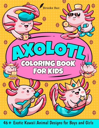 Axolotl Coloring Book for Kids: 46+ Exotic Kawaii Animal Designs for Boys and Girls Featuring Underwater Scenes, Sea Life, Aquatic Adventures, and More