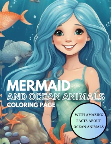 Mermaid and Ocean Animals Coloring Page: With amazing facts about ocean animals | Coloring book for kids girls & boys | Gifts for Toddlers | Discover guide to sea life