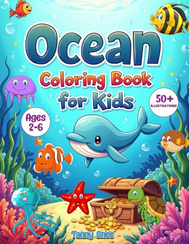 Ocean Coloring Book for Kids: 50+ Cute and Easy Illustrations of Sea Life| with Dolphins, Mermaids, Fishes and Marine Animals| Perfect for Boys and Girls Ages 2-6