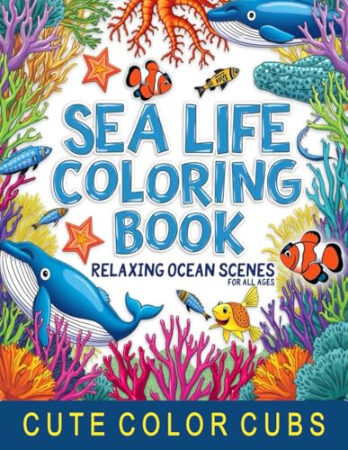 SEA LIFE COLORING BOOK : RELAXING OCEAN SCENES FOR ALL AGES: Activity Book for young boys girls adults featuring Fun Cute Kawaii Ocean Creatures