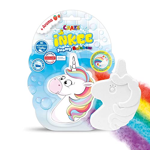 INKEE Foamy Rainbow | Regnbåge badbomb barn badtillsats med jordgubbsdoft, badkula i moln eller enhörningsform, 150 g