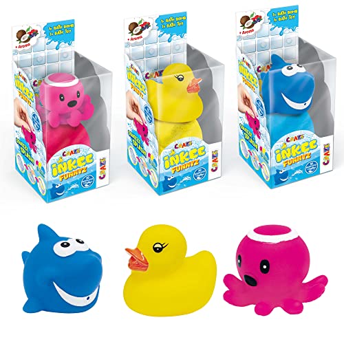 INKEE Funnyz Set med 3 doftande badbomber för barn med babyleksaker, badbollar för barn med överraskning, badleksak, gummi-vattendjur