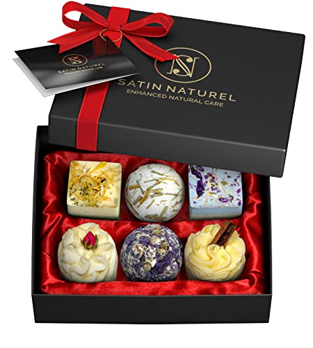 Organiska badbomber för kvinnliga gåvor 6 stycken gudomliga stunder - handgjorda gåvor till henne - eleganta gåvor till henne med eteriska oljor - vegangåvor för mamma bubbelbad present i premiumbox