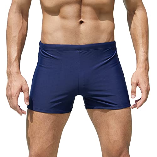 Arjen Kroos badbyxor herr badshorts korta badbyxor män tajta boxer simbyxor badmode simning shorts med dragsko, A2-marinblå, L
