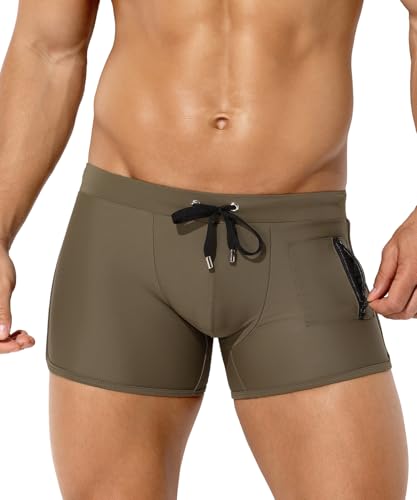 Casey Kevin badbyxor, herr, snäva, korta badshorts med dragsko, simbyxor, badbyxor för män, simkläder, skolsimning, E5 armégrön, XL
