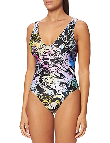 Ulla popken damer stora storlekar plus size baddräkt Conny, långt ben, Wavy, svart, 44 SE