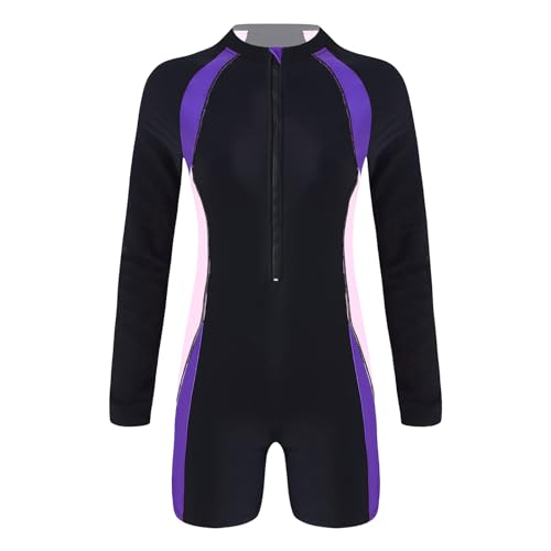 inhzoy Dam surfbaddräkt kort/långa ärmar sport baddräkt badkläder med ben simoverall badkläder strandmode, Lila och rosa K, XXL